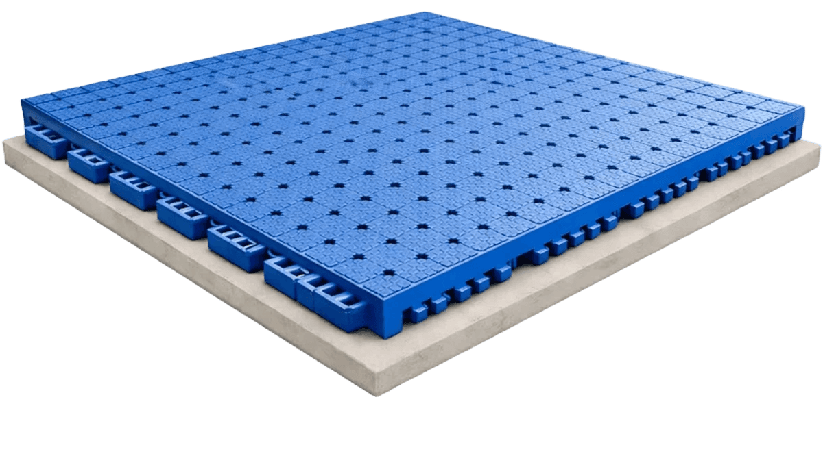 Superficie plástica prefabricada en copolímero con subestructura de poliolefina termoplástica, elástica y antiderrapante con tratamiento antibacterial Protecsol.