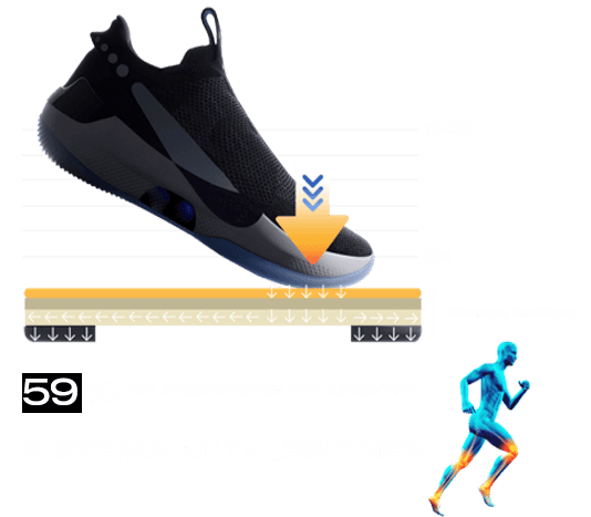 Tecnología de absorción 45 mm (59%) conforme a norma europea UNE-41958 IN, diseñada para proteger al atleta y mantener un bote de balón preciso y uniforme