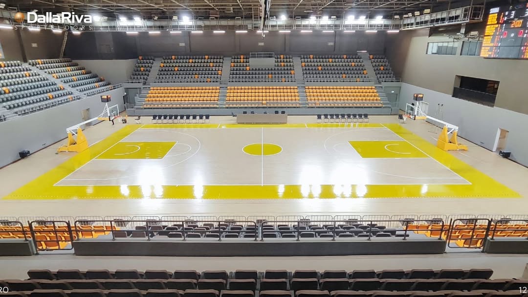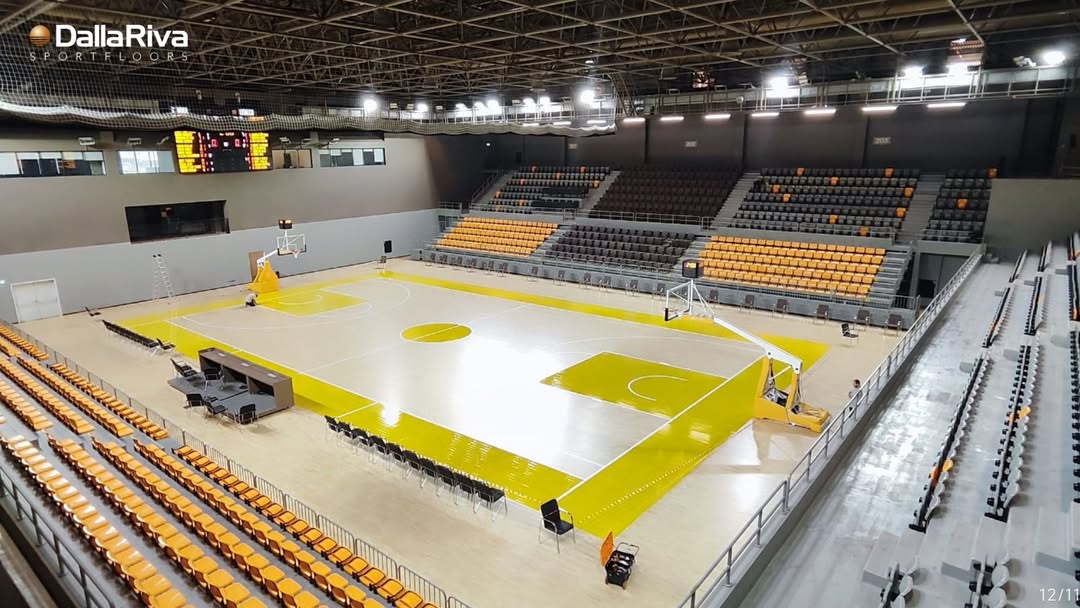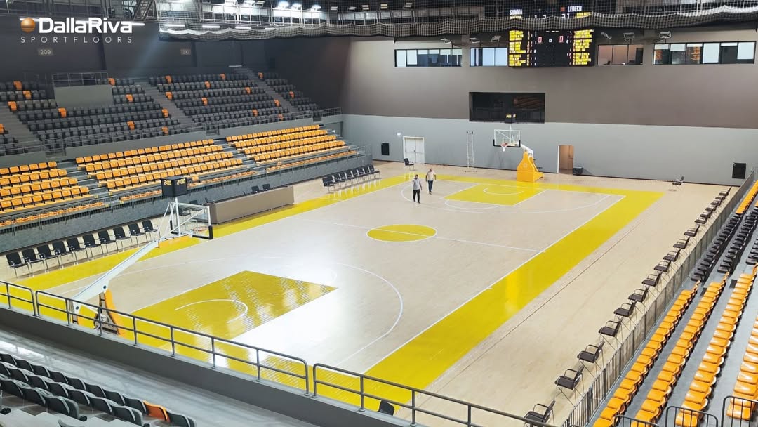 Cancha Profesional con duela europea HEVEA, rubber wood premium Indoor para alta competición y recreativo.